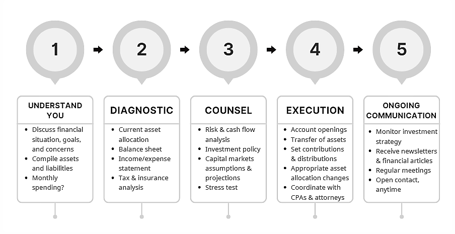 Partnering with us means gaining access to institutional caliber investing with a personal touch. With decades of investment experience and no commissions, we prioritize your financial success.